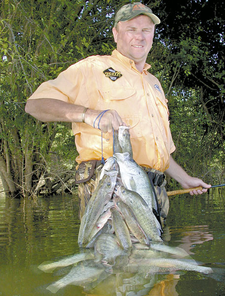 “Wade-fish in water above hard ground, instead of soft mud that will suck off your boots,” Wood suggested. “The crappie may be holding in only 1 to 2 feet of water, which means thigh-high waders will work. The springtime crappie are searching for a firm bottom and areas protected from wave action.”