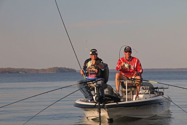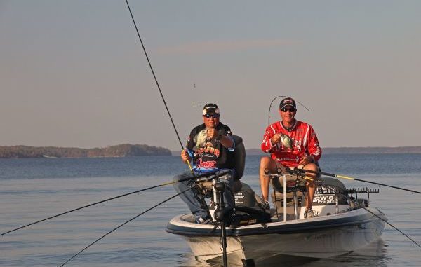 “The most important thing is getting the widest spread possible for the structure you’re fishing,” he said. “If you’re in open water, you have no issues. But if you’re in tight cover like standing timber, stump fields and you have stuff standing up above the water, you may have to tighten the space between rod tips.