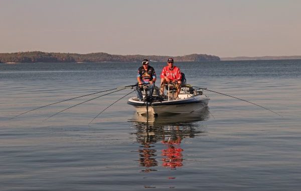 “A lot of it has to do with where you’re fishing and how active the fish are. In shallower water, the fish will hit and they can’t run down, so they’ll run to the side. That’s when you want to space them farther apart to prevent the fish from running under other poles.