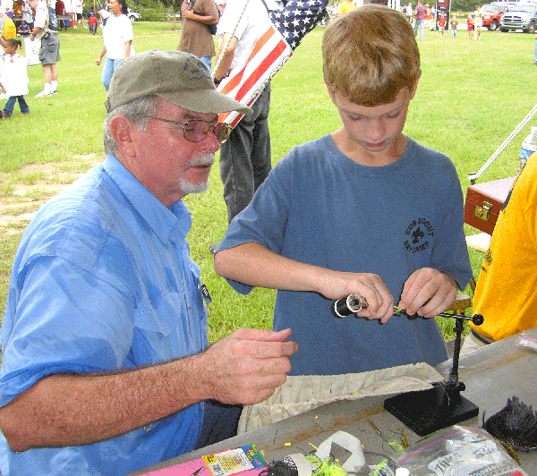 After the basic tool set comes material selection: hooks, feathers, fur, eyes, synthetics. This is where instruction plays in.