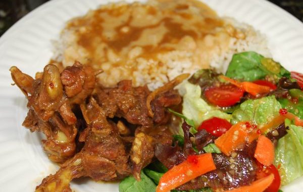 Wash the turtle meat and cut into serving size pieces. Sprinkle with meat tenderizer, salt, red pepper, black pepper and garlic powder and mix by hand. Put in a gallon plastic zipper bag and set aside in refrigerator for up to 24 hours. When ready to cook the meat, add vegetable oil and sugar to a large open pan or pot. Cook over low to medium-low heat, stirring constantly. This is a delicate step, as the sugar and oil should not be heated to bubbling. If begins to bubble, remove the pot from the heat immediately and allow it to cool before returning to heat. If overheated, the sugar will burn “almost instantly.” The sugar will dissolve, clump, then re-dissolve. Any sugar sticking to the spoon or spatula should be scraped back into the oil. When the oil and sugar mixture is an even light brown color, add the turtle. Increase heat to medium and brown uncovered, stirring the pan occasionally. As the water cooks out and it begins to sizzle, add just enough water to keep it from sticking. Cook until the turtle is as brown as desired, adding water periodically as needed. Add Kitchen Bouquet for color and cook 10 more minutes. Add 8 cups of water, cover and cook at least 30 minutes or until the turtle is tender. As the meat starts to become tender, slightly crack the lid on the pot to allow for evaporation of some of the liquid. When the liquid is at 1/3 the starting level, stir the cornstarch into 1 cup of water and add it to the gravy. Simmer on medium until the gravy is the desired consistency. Add salt and pepper if needed. Serve with rice, or better yet, rice and white beans over which to drizzle the gravy.