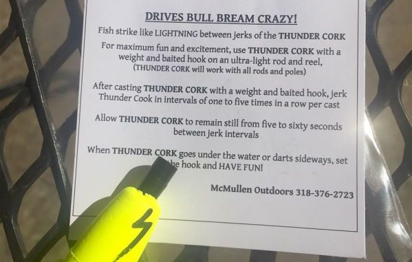 Marketed with his brother Mike through McMullen Outdoors, the corks are found in selected tackle shops or can be ordered directly by calling 318-376-2723. Their newly constructed website, mcmullenoutdoors.com, provides instructions for the cork’s use and has a photo gallery of catches made with the cork, but directs the reader to order by telephone at present.