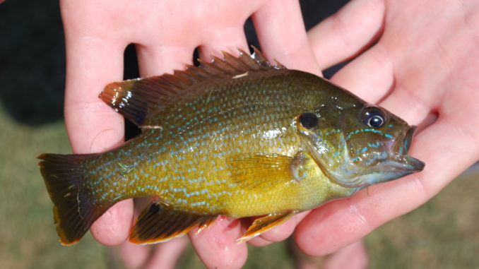 Sixteen members of the sunfish genus Lepomis exist in the United States, 10 in Louisiana. The green sunfish will mate and hybridize with every one of them. It’s a wonder that the fish even exists as a species anymore and hasn’t bred itself out of existence.