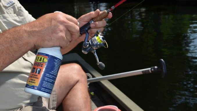 The lubricant, against all logic, must be odorless, because the fish paid absolutely no attention to its presence on the line and the line left no oily sheen on the water. They pair used it both on braided and monofilament lines.