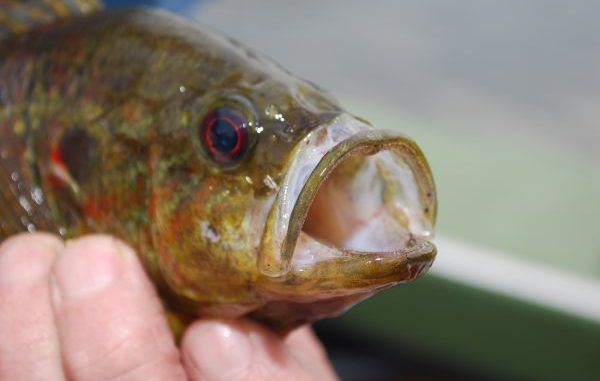 But the goggle-eye is better known for its huge mouth than its color. Its “accepted common name” (goggle-eye is considered a local name) of warmouth and its scientific name Lepomis gulosus both refer to its mouth. “Gulosus” means “large-mouthed” in Latin.