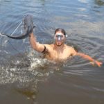 As he ran the lake’s shoreline southward a hundred or so yards out from the bank to search for suitable diving water, he explained how he got hooked on this gig.