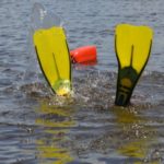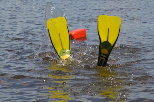 He placed a dollop of the dentifrice (any brand is fine, he said) on the inside of each lens. He used his fingers to smear it over the lens’ inner surfaces, and then rinsed them clean in the lake’s water. This process keeps the lens from fogging over when colder lake waters hit them, he explained.