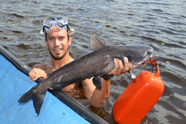 Jacob Griffin explosively surfaced from the tea-colored water, blowing like a spouting whale. Firmly gripped in his hand was another Lake Maurepas blue catfish.