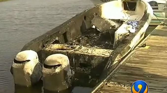 WECT reported another boater noticed a sheen of gas on the water and told the men to call a tow company instead of cranking up the boat because it might cause an explosion, but a spark ignited the fuel when a battery was disconnected.