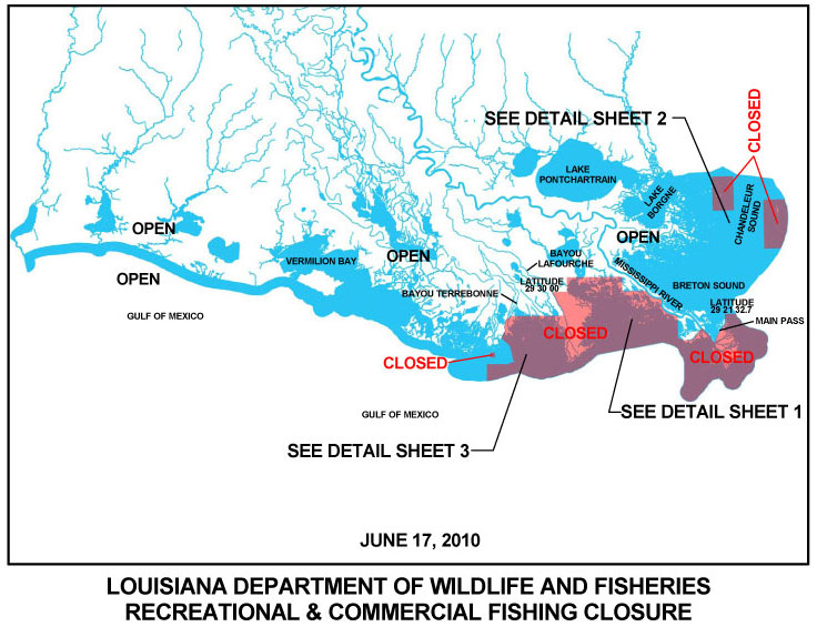 Click here for a LDWF detailed map of the area, while an agency map of all state closures is located here.