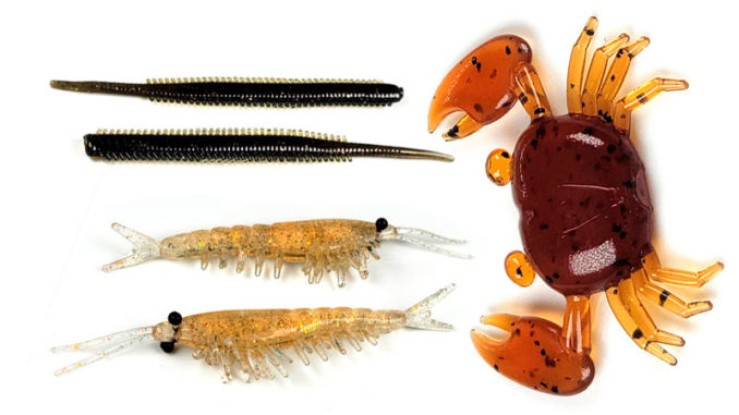 Entering the saltwater soft-plastic market with a series of DuraScent baits, Gamakatsu has something for almost anything an angler wants to target with artificial shrimp (3 per package, 2.3 inches long), crabs (4 per package, 1 inch), sandworms (5 per package, 3.3 inches), octopus (2 to 5 per package) 1.5, 4.5 and 6 inches) and salmon egg imitations.