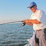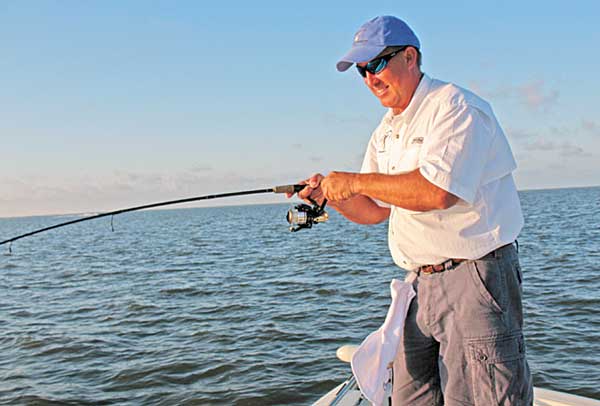 “Grand Terre has a very distinctive sand bar, and you can locate it easily with your depth sounder,” he said. “You’ll see the bottom stays about 7 feet deep pretty consistently, then it’ll rise up suddenly to 4 feet and then drop down again. That rise in the bottom is the sand bar, and that’s where you want to anchor your boat. Anchor so that you can cast right up to the beach in the surf.”
