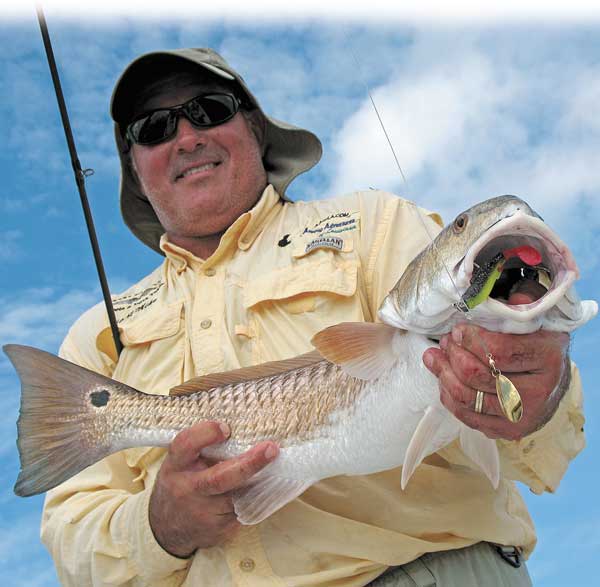 For reds, he sticks with the three S’s — shrimp, spinners and spoons — tossed up near to the shoreline.