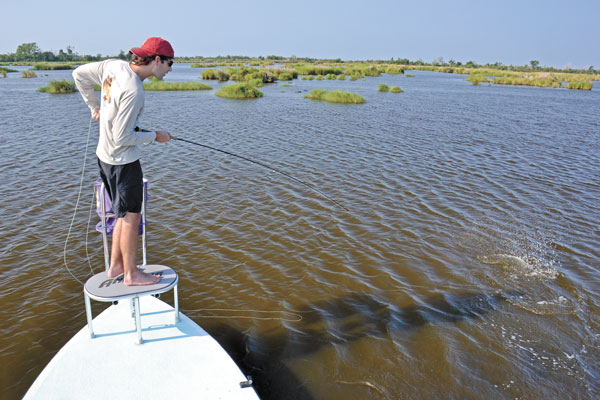 “I love fishing clear water, but even in low visibility you can see the shadows and dorsal patterns. And there’s that surge of adrenline you get when a red flares its gills and inhales your fly!”