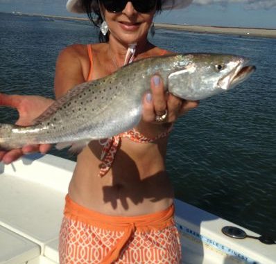 The island’s speck predator, Tommy Vidrine, and his wife J Lynn got in on the action early when they hit the beach late Sunday morning and hauled in 30 nice trout, including one over 4 pounds.