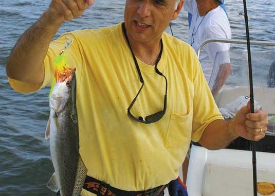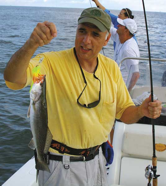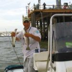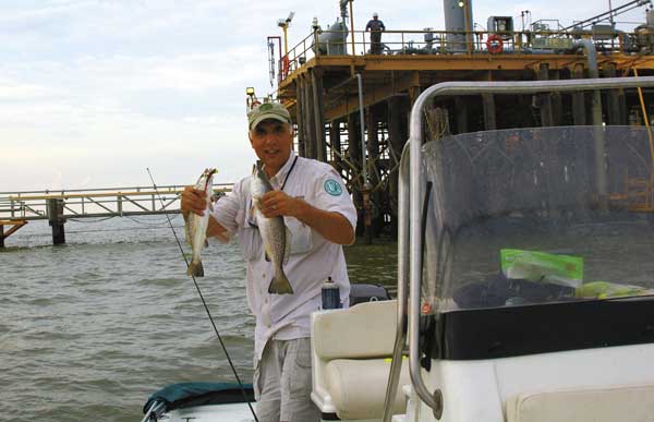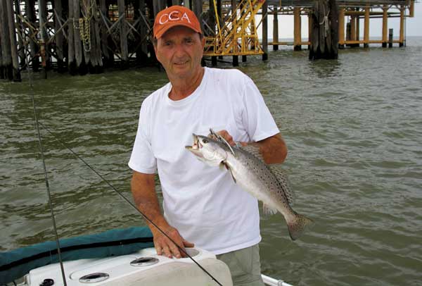 “The premier rig out there is 74, and the reason for that is when you’re riding from 51 and 52, you’re going from 18 to 24 feet of water to shallower depths,” he said. “You can see it coming up. You’ll start to see the Gulf rise to the Chevron platform, which is in about 14 feet of water, and it’s on a shelf. It’s a wonderful reef out there. In the same trips, you’ll catch redfish. One day I was out there, and the water was real clear. I caught king mackerel and jack crevalle while trout fishing. It’s a pretty special place.”