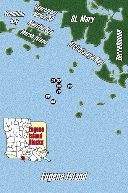 The numbers on these Eugene Island rigs often match those in your ice chest this time of year.