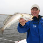 Meanwhile, Vinson decided to pull out all stops and dipped into the bait well for some Campo’s live shrimp and gave that a try. He got an instant hookup with a sizeable speck.