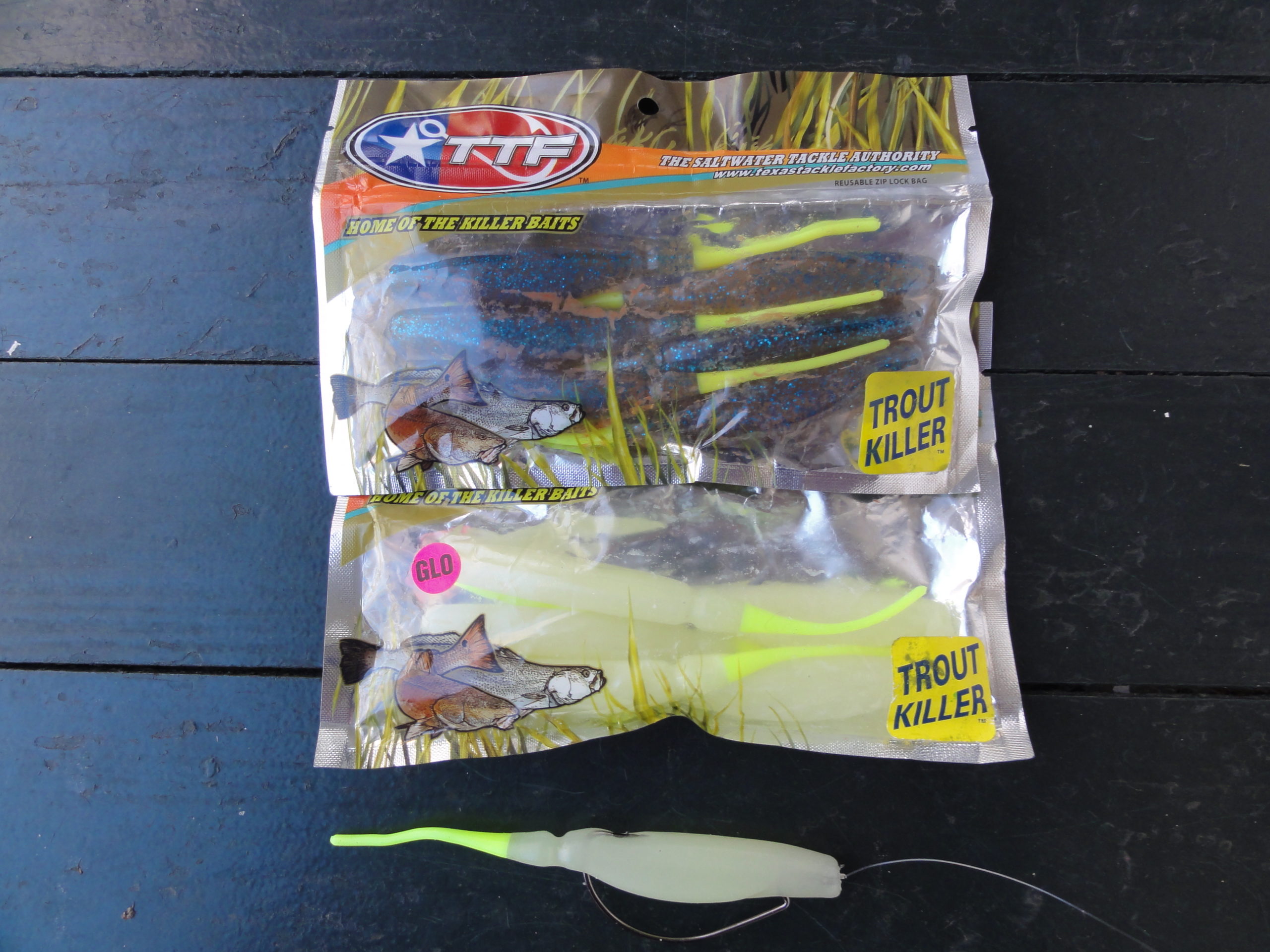 When two more casts landed him two more trout, I pulled off the plastic and went with the live shrimp also.