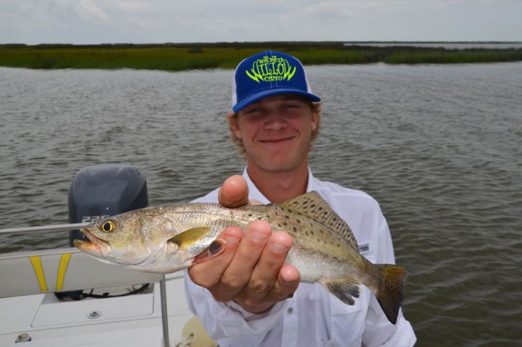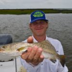 “This is going to be mostly redfish today because the wind is forcing us to fish on the east side of the river,” he shouted above the motor. “Usually, unless my customer has other preferences, I like to target speckled trout early in the day before the wind picks up, then go to redfish later.”