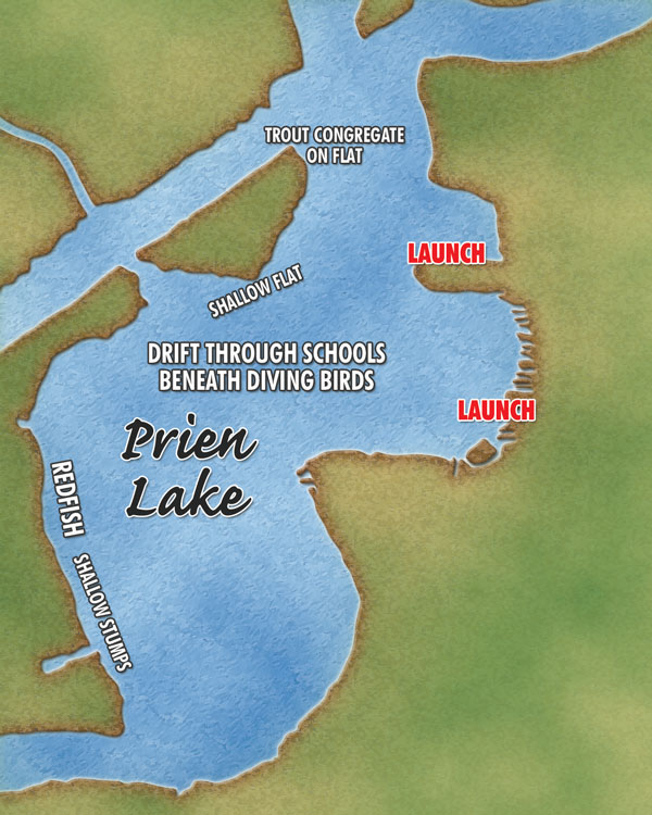 Prien Lake is fairly flat and really all looks about the same, but Medicis said there are a couple of hotspots for trout.