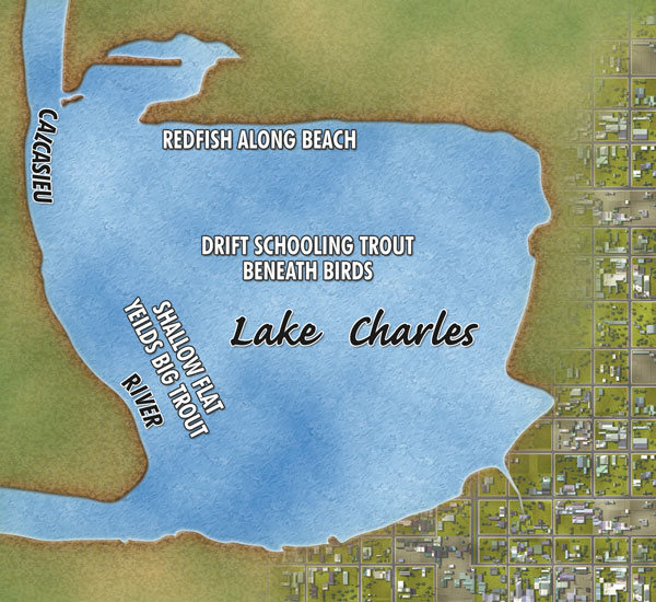 “There’s a flat right where you go into Lake Charles, and you can catch 7- to 8-pound trout right there,” he said.