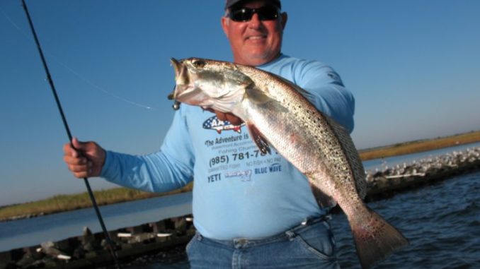 “The trout slammed our live shrimp here yesterday,” Gallo said. “But that was yesterday, and the fish are moving with the bait.”
