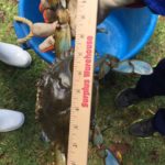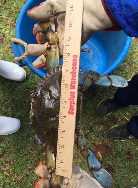 The largest of their big blue crabs measured 7 ½ inches across the back, and stretched the tape to a whopping 18 ½ inches from claw tip to claw tip.
