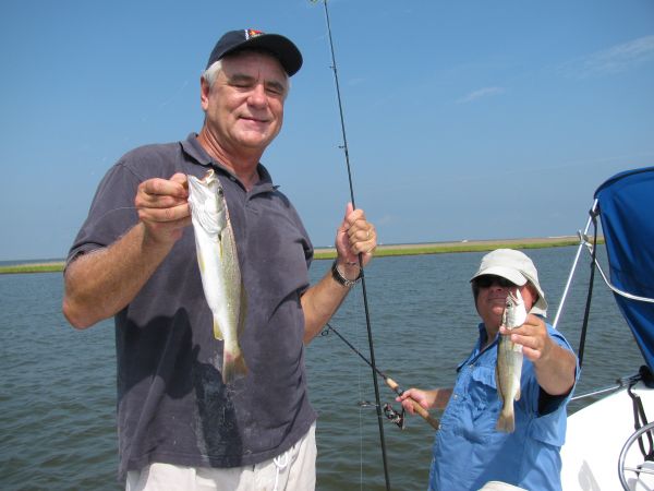 On a good trip with clean water and falling tide, you might catch a nice sampling of all these species (usually heavy on the white trout.)