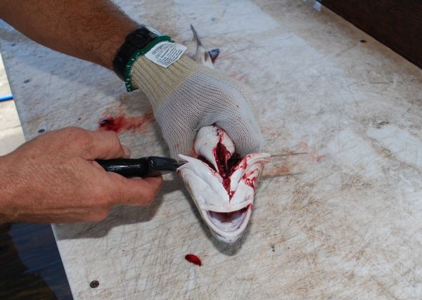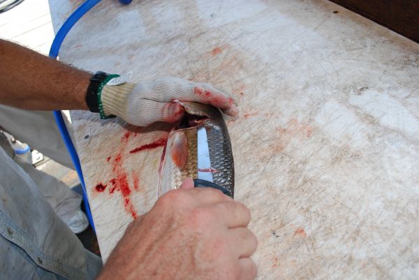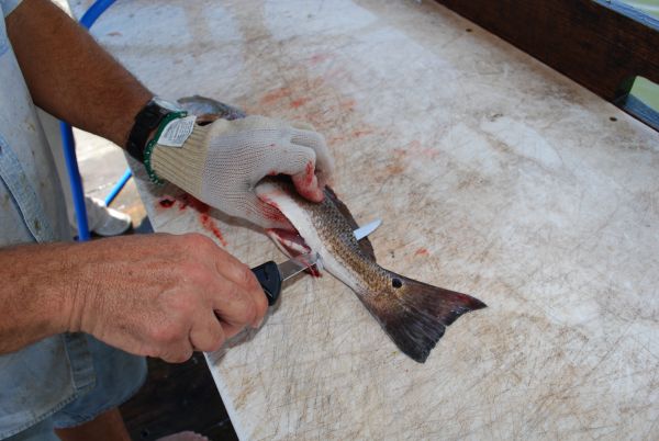 Fish-cleaning expert Ricky Richoux takes advantage of any opening, or chink, in the armor of the fish, when cleaning them. One opening is the anal vent. A soft spot on the fish is the small groove that closely parallels the dorsal (back) fin.