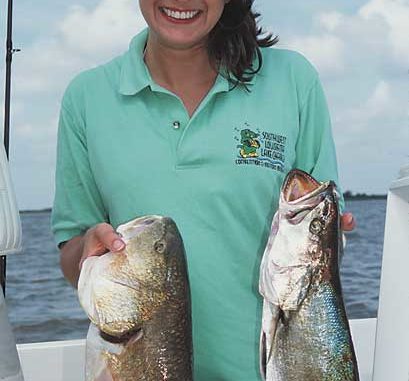 “Two anglers catching 25 to 50 trout and 10 redfish in a day of fishing Calcasieu isn’t uncommon at all,” Stansel reports. “When fishing is really good, you can catch and release redfish and trout all day.”