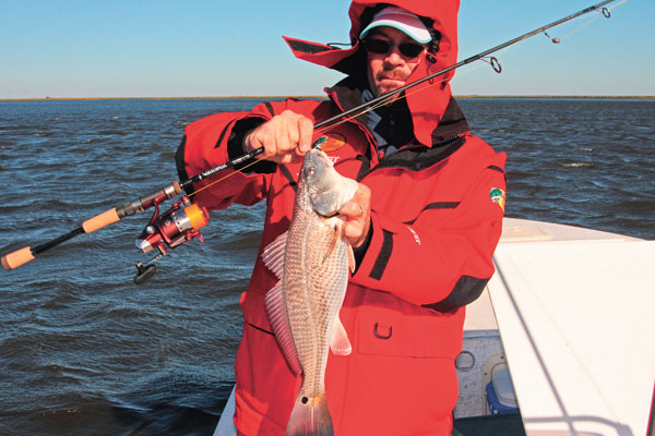 Deciding on where to fish should be based on what kind of redfish you want to catch. Poe intimated that the redfish in the open-water schools run around 15 pounds, and the redfish along the eastern bank typically run from 18 to 20 inches with an occasional 24-inch fish.