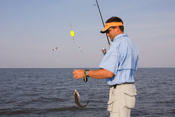So how do speckled trout anglers know they’ve gone south far enough? According to Shilling, there are a few visible signs to look for. One is diving birds, and the other is a foamy prop wash.