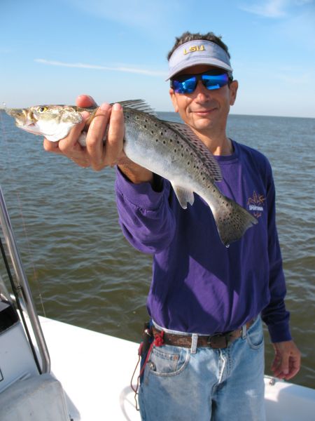 Capt. Gerald Ellender (985-688-1715) agreed to guide me and buddy Kevin Bergeron into the heart of Dularge’s speckled bounty to see if we could find something to take home in the ice chest. After a short ride through Houma and then down La. 315 to Dularge, Bergeron and I drove over the levee and met Capt. Ellender at his boat dock.