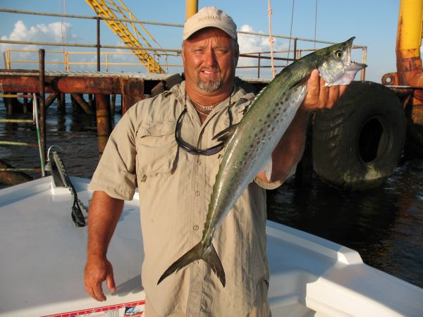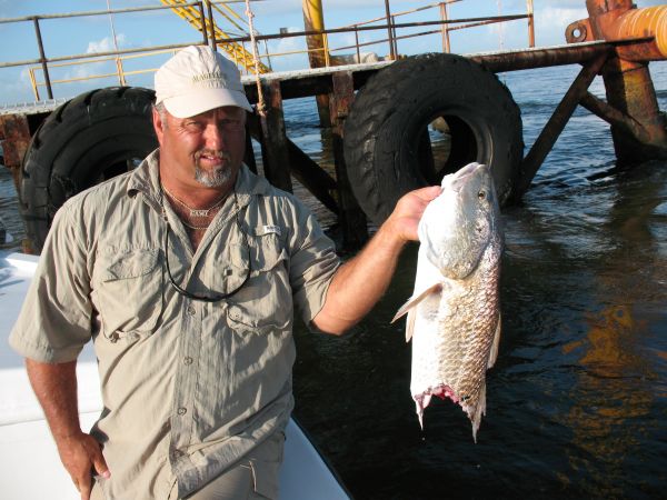 “Just be sure to bring plenty tackle when you fish around these rigs because the bottom is littered with pipes and cables and debris, and you are going to lose some tackle. Some anglers like to fish sliding-cork rigs out here because the bottom keeps grabbing all their tackle.”