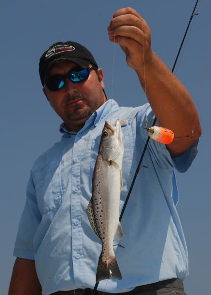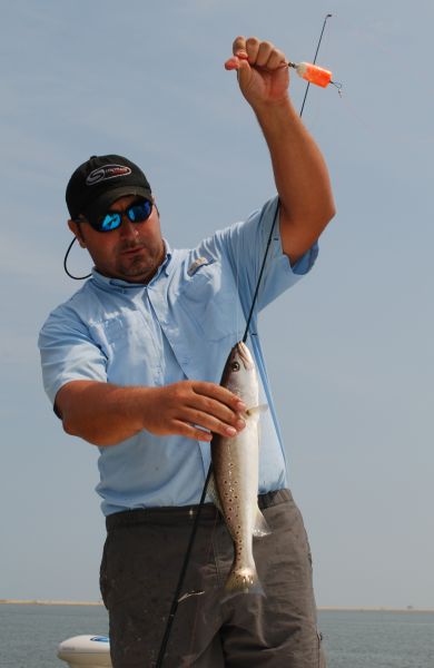 He worked the cork with a slow, methodical popping motion. As he predicted, the catch were mostly 12- to 15-inch fish. Carter wasn’t happy about the size, but what the heck — they were speckled trout.