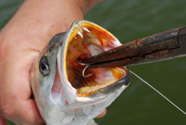 Methodical and patient he was, first from his tied off position and later as he moved the boat around the platform. The banana fish put on quite a show. It was one after the other. And it was easy to see why ladyfish (their more proper name) are the closest living relatives of tarpon.