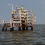 The platforms, large and small, that we planned to hit were located in a sort of funnel between the tip of the Chandeleur Island chain (Breton Island) and the land mass of the Mississippi River delta. The first stop was at a small well guard north of the track between Baptiste Collette and Breton Island.