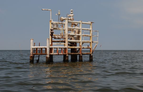 The interior cove of the crescent-shaped island was protected from the wind, and the water was beautiful. A mob of brown pelicans festooned the beat-up old wooden bulkhead that, along with a concrete slab and an abandoned wellhead, is all that is left of man’s presence on a once-substantial island.