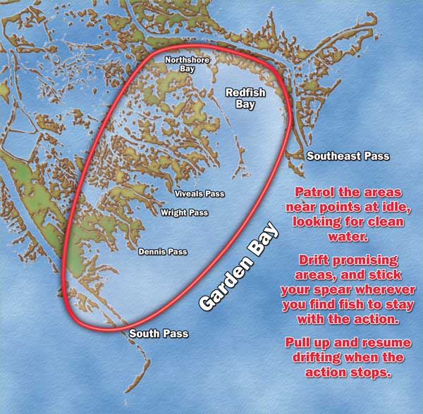 This “garden” is actually a body of water below Venice that stretches between Southeast Pass and South Pass of the Mississippi River, and its blossoms are actually speckled trout and redfish. Garden Island Bay or, as some maps call it, Garden Bay is a sizeable body of water that encompasses Redfish Bay on its north end and numerous passes and branches of the Mississippi all the way down to South Pass. It literally comes alive this time of year with specks and reds like a mountainside blossoms with wildflowers.