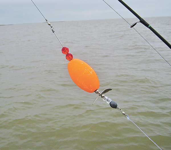I thought the propeller looked goofy, and in fact I noticed it tended to tangle with their leader line when they tossed it. But they out-caught me three to one with the prop rig. I tossed my baits in the same spots and got ignored, but their baits got inhaled.