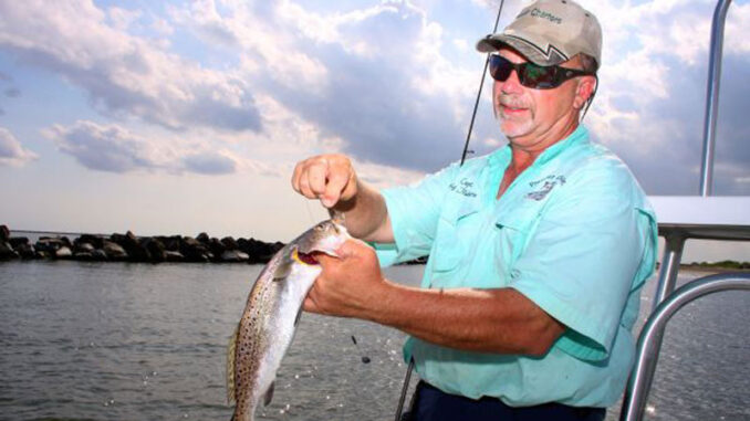 Not only is Matherne able to save some bait and hooks with a drop-shot, he is also able to present his shrimp and croakers to trout around the rocks in what he believes is a much more natural presentation.