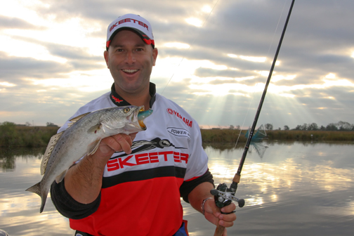 As we arrived at LaCoste’s little unnamed canal, he was a little leery at first. The water was at a standstill, and he thought we needed the tide to start falling to really smack the trout. We got to work anyway, and picked up a fish here and there.