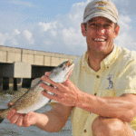 “You can feel that edge with your bait,” Kendrick said. “If you cast up to the pilings, you’ll notice the current pulling hard on your bait. Then it gets maybe 10 or 15 yards off the bridge, and you feel that pull start lightening up. Trout aren’t going to expend the energy to fight the current all day, so they sit back in that little bit calmer water and wait on bait.”