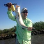 Fishing with those aforementioned artificial lures, he said, it’s critical to be in water with 1 ½- to 2-feet of visibility for them “to work well,” i.e., get the attention of speckled trout, get their dander up to smash one or the other, and smash it they do. Hold on to the fishing rod tight, he said, because the ferocious bite from a heavy fish can rip it our of your hands.
