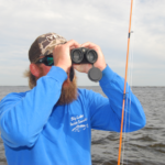 Capt. Nick Poe, with Big Lake Guide Service, continually scanned the cobalt blue horizon with binoculars on a recent trip to the estuary located just west of Calcasieu Lake in search of flocks of working birds.