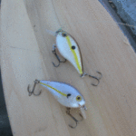 “But that ain’t the only bait I use, Hom-Boy-Da. Man! When I see those shiners just blowing up — blowing up along these canals, especially in the cuts, well I know there’s bass under them. That’s when I cast out my crankbait. I like a small silver colored one to mimic the shiners, especially this time of year, when the grass and weeds haven’t really clogged up the canals so the two treble hooks don’t usually snag much.”