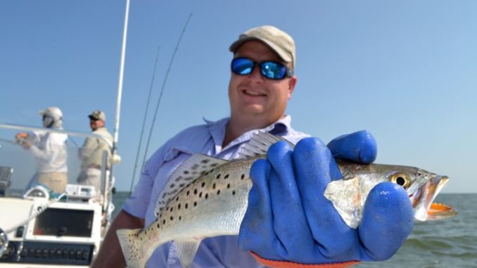 Dularge is known for double-rigging lures and anglers catching trout two at a time, but that’s rarely the case when fishing the marshes this month, the guide explained.
