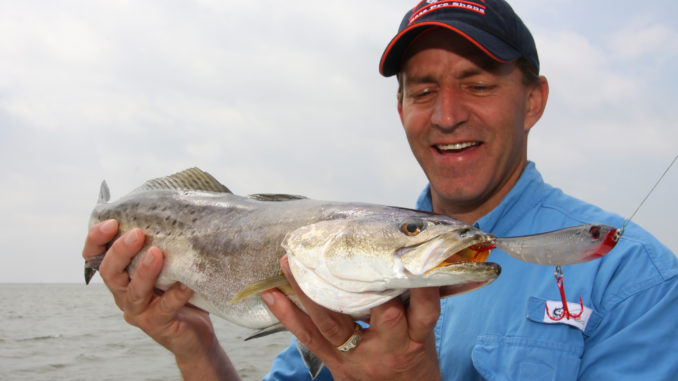 Captain Eddie Berthelot with Spots & Specks Charters (985-637-3177) has a good cure for fishing during the north winds we’ve had the last few days. He’s been fishing the surf side of Grand Isle, and the initial groups of trout that have moved in have kept him more than busy.