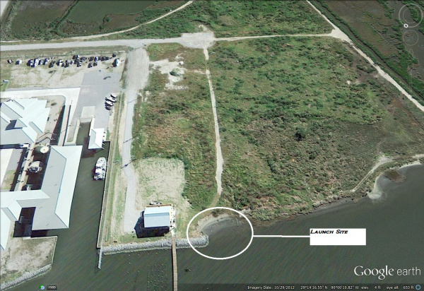 Directions to the new Grand Isle kayak launch site: Turn onto Ludwig Lane from La. Hwy 1. Turn left just before the Louisiana Department of Wildlife and Fisheries Marine Fisheries Lab. Proceed about 500 feet, take a right on LSU Lane, then take a left before you encounter a construction area.
